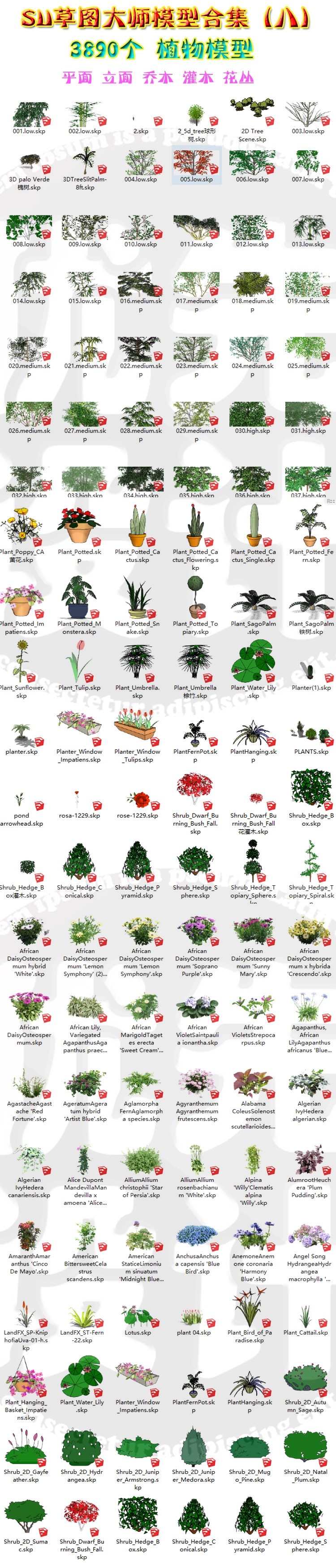 SU草圖大師 喬木灌木 花叢 盆栽 模型庫(kù) sketchup素材 細(xì)節(jié)17推廣熱賣(mài)行情