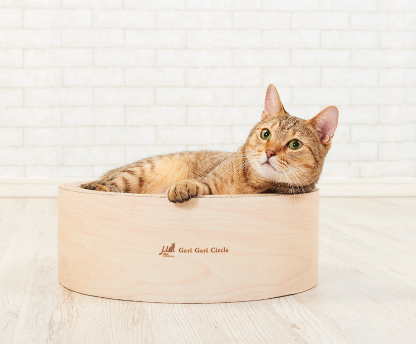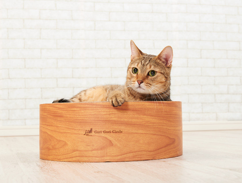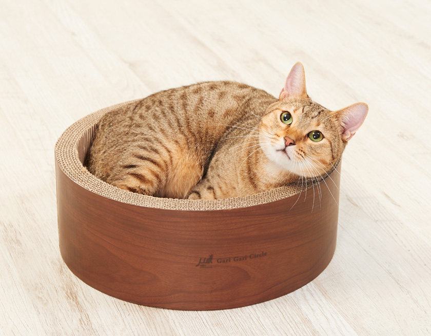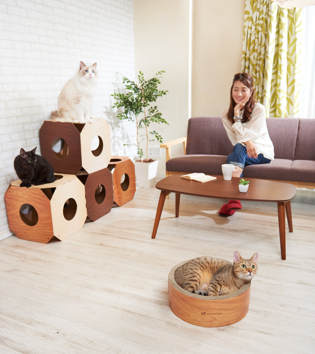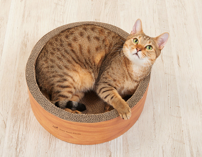 三種圓形都有木紋風(fēng),配合家裝而設(shè)計(jì)。mju產(chǎn)品不僅考慮貓咪本身,也為貓奴們著想。