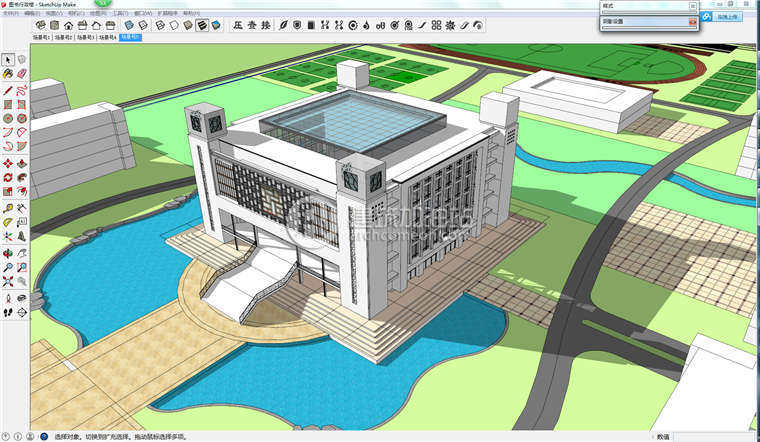 su現(xiàn)代圖書館建筑設計方案 Sketchup草圖大師展覽館單體組件模型推廣熱賣行情