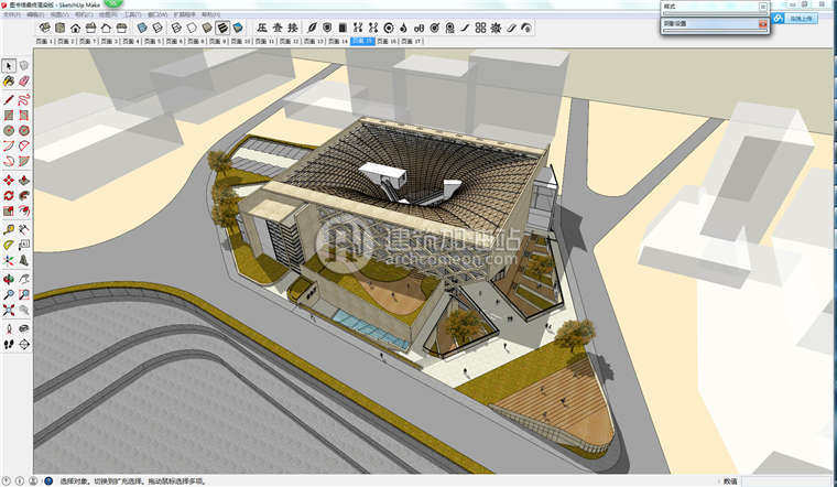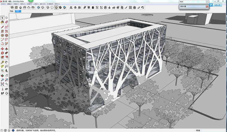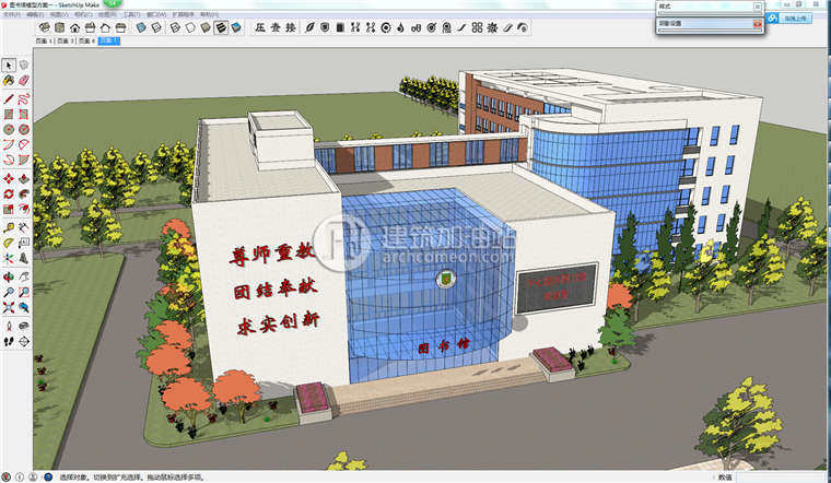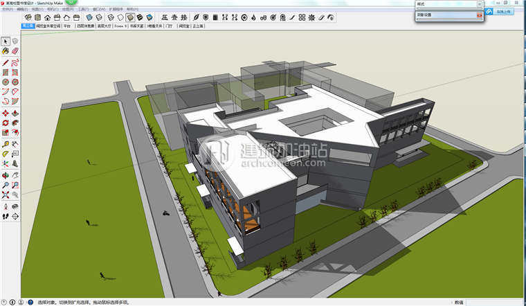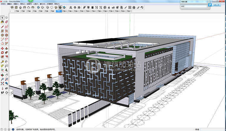 su現(xiàn)代圖書館建筑設計方案 Sketchup草圖大師展覽館單體組件模型
