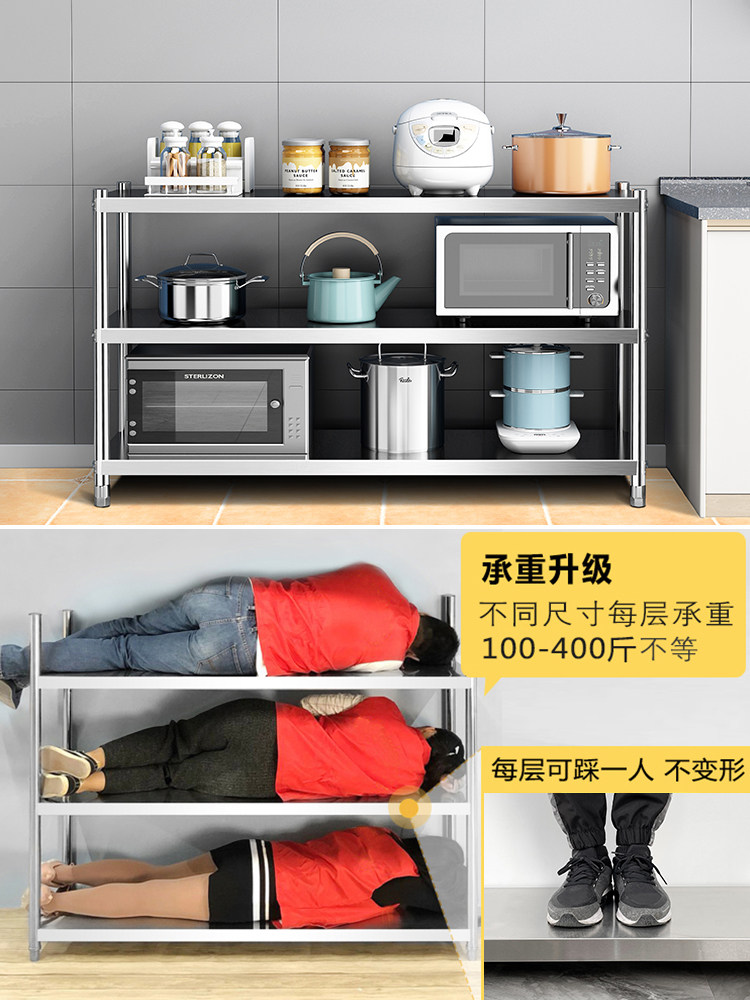 三層餐邊柜置物架落地多層廚房不銹鋼儲物貨架收納柜子微波爐櫥柜價格行情