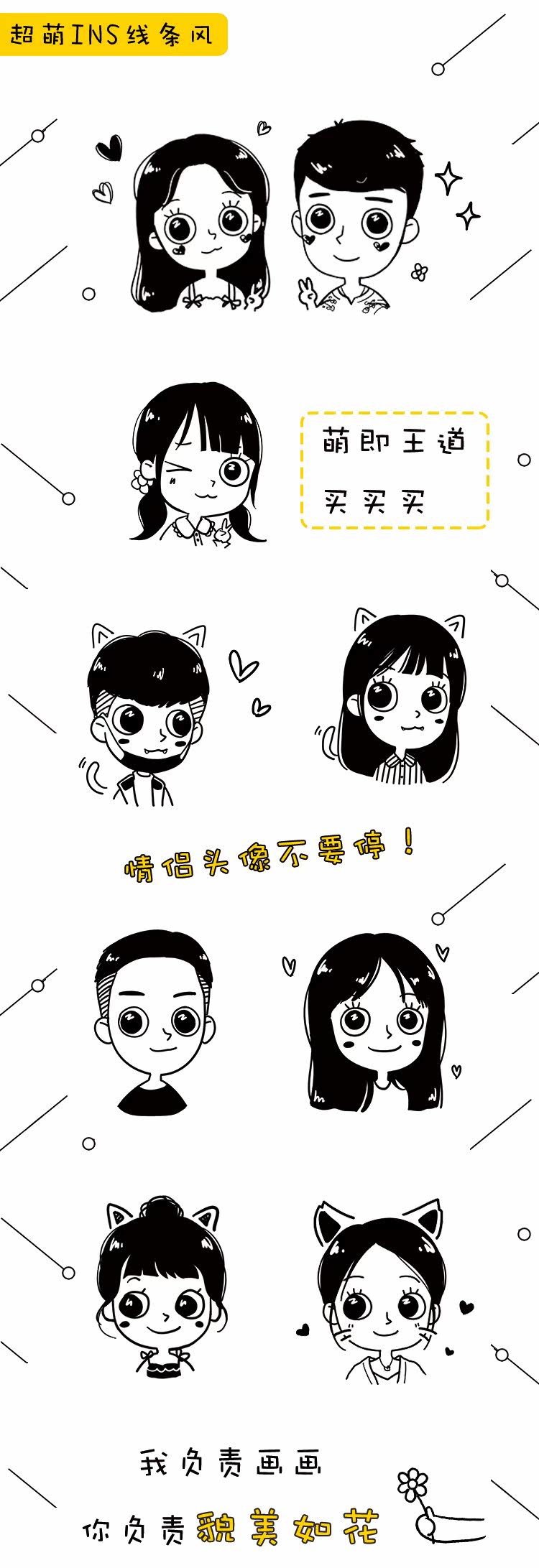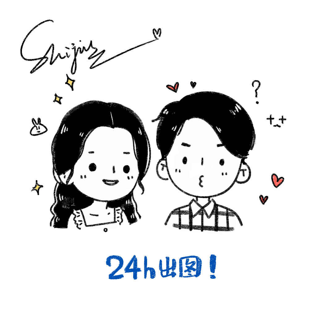 ins風(fēng)黑白Q版手繪頭像簡(jiǎn)約定制作真人照片轉(zhuǎn)卡通logo情侶設(shè)計(jì)漫畫