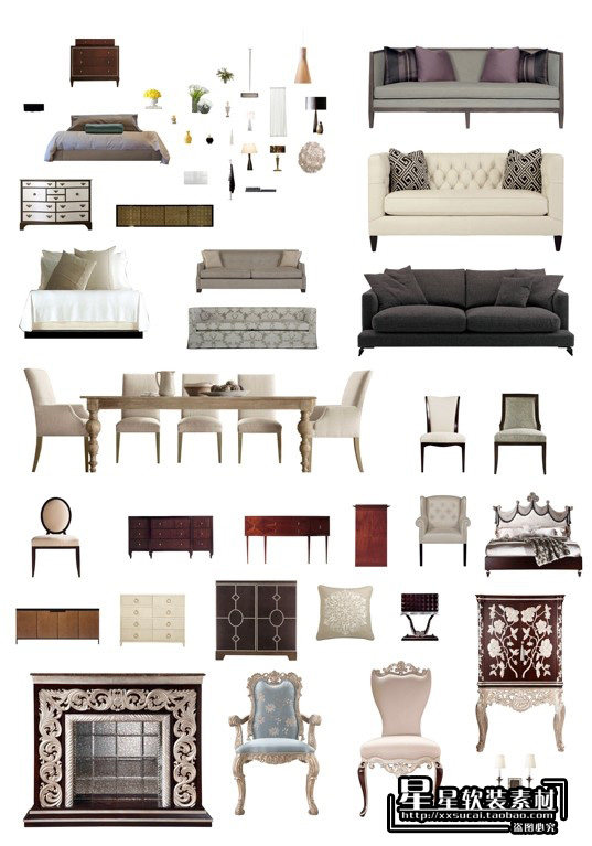 星星軟裝新古典中式現(xiàn)代美式PSD分層風(fēng)格家具 概念方案設(shè)計素材