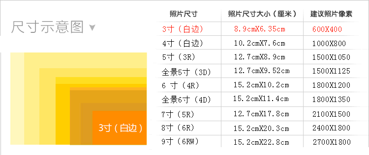 - 尺寸:3寸4寸5寸大5寸6寸大6寸7寸其它尺寸