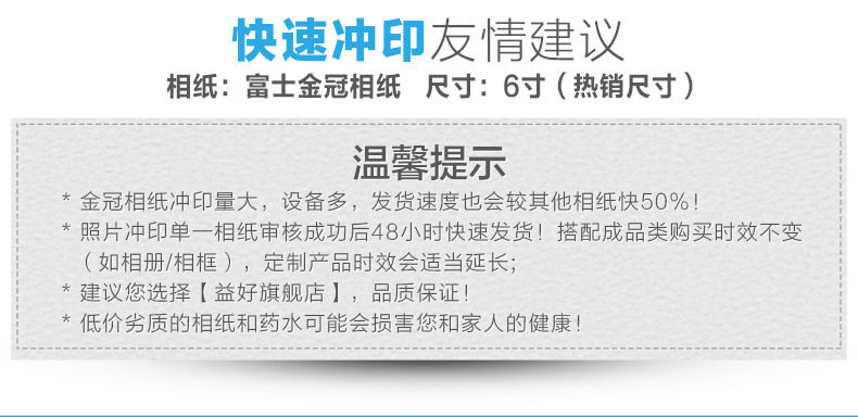 | 答:親,益好旗艦店是大型照片沖印生產(chǎn)車間,3個加工,上海,廣東,山東根據(jù)訂單隨機進(jìn)行生產(chǎn)制作,同樣發(fā)貨地點可能每次也會不同,我們使用多種快遞【郵政EMS、韻達(dá)、百世匯通、順豐快遞(采用到付運費方施】 |
