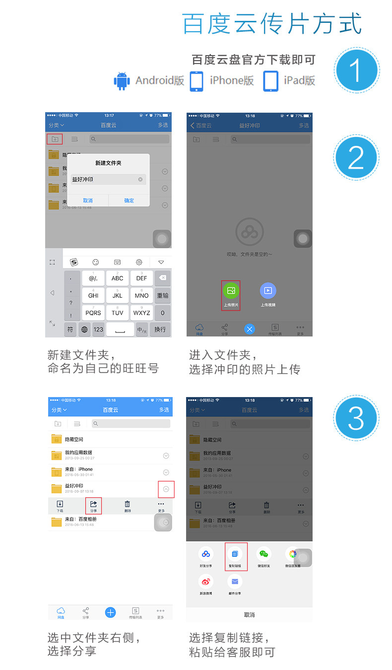 | 答:我們有2種上傳方尸可以使用云盤或者郵箱傳給我們,親可以先下單,傳好后通知我們即可,收到后就會為您安排生產(chǎn)制作發(fā)貨。 |