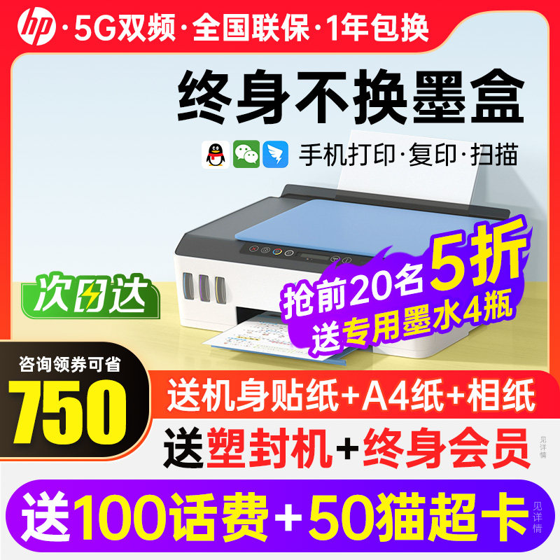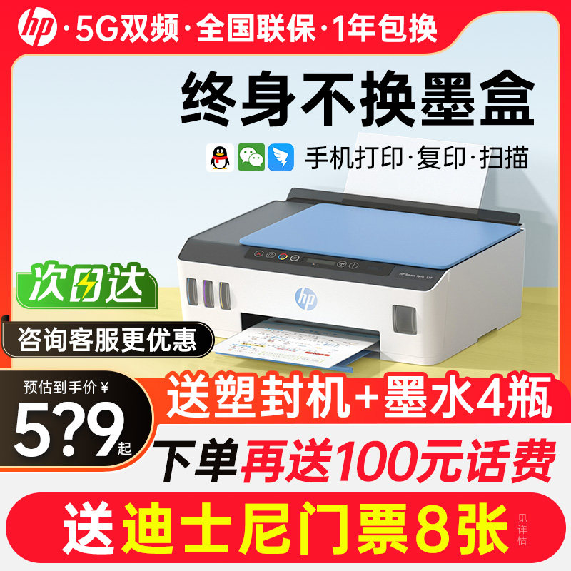 HP惠普tank510彩色連供墨倉式打印機(jī)復(fù)印掃描一體機(jī)411家用小型可連接手機(jī)無線學(xué)生噴墨照片作業(yè)辦公專用519價(jià)格行情