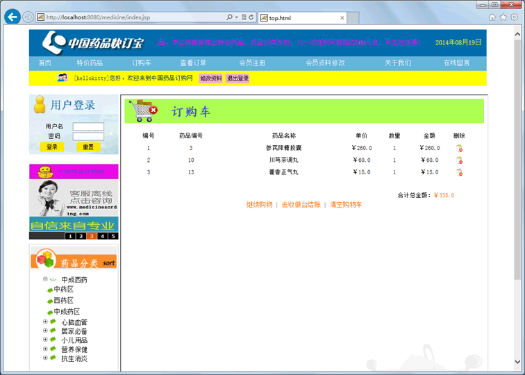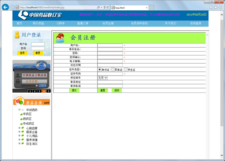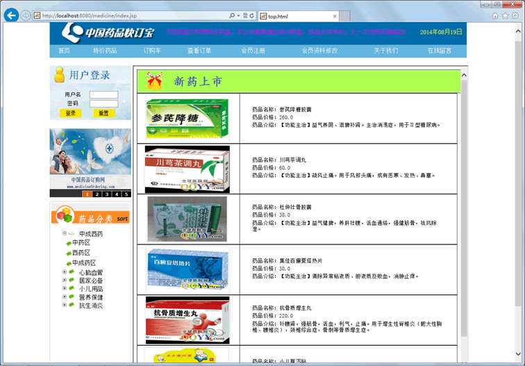 JSP醫(yī)品店訂購系統(tǒng)銷售網站商城/java畢業(yè)程序設計源代碼價格行情