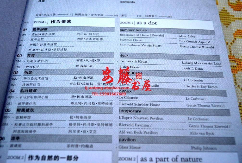 建筑作品以縮放的順序進(jìn)行排列。根據(jù)各自的縮放比例,以能代表作品的關(guān)鍵詞作為分類(lèi)將許多作品綜合在一起。以從建筑上方俯視的狀態(tài)慢慢向建筑物靠近,根據(jù)綻放的順序進(jìn)行閱讀,或者反向從非常后倒著往前閱讀也會(huì)享受到不同的樂(lè)趣。