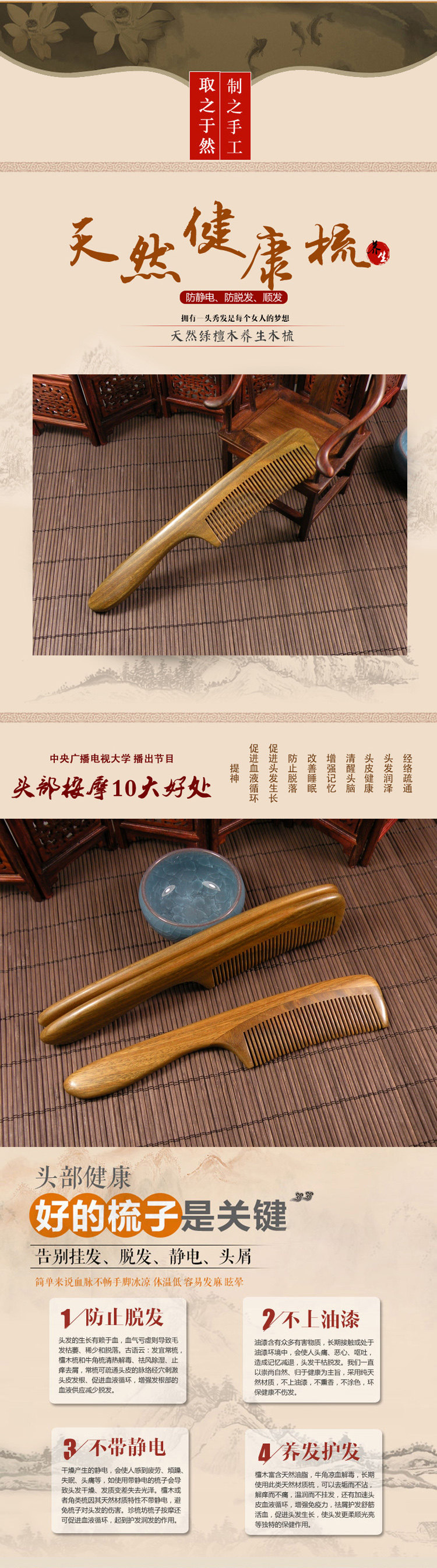 小密齒梳子 天然正品綠檀木梳 按摩梳 男女木梳寶寶梳 兒童專用梳推廣熱賣行情