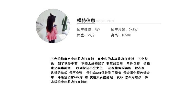 Amy baby家秋嬰兒女寶寶女童棉磨毛木耳邊中領(lǐng)打底衫熱烈推薦推廣熱賣行情