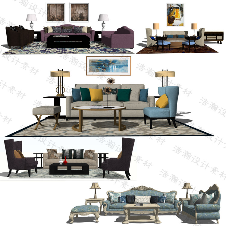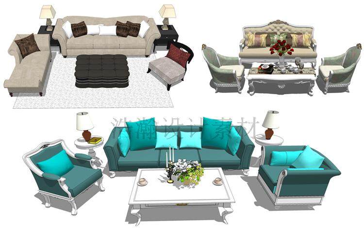 Sketchup室內(nèi)草圖大師家具歐式簡(jiǎn)歐家床餐桌沙發(fā)壁爐柜子SU模型推廣熱賣(mài)行情