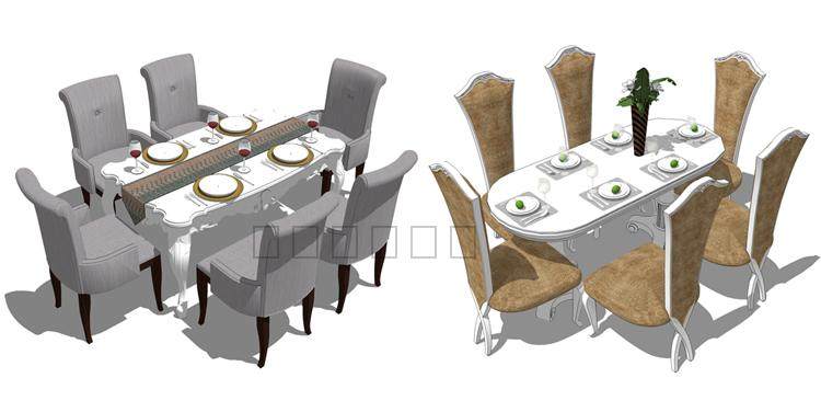 Sketchup室內(nèi)草圖大師家具歐式簡(jiǎn)歐家床餐桌沙發(fā)壁爐柜子SU模型