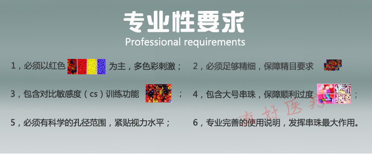 2,從大到小等級(jí)非常細(xì),首創(chuàng)添加對(duì)比敏感,這是我們定義的弱視串珠基本要求,在此基礎(chǔ)上,我們實(shí)現(xiàn)更高層次上的要求;