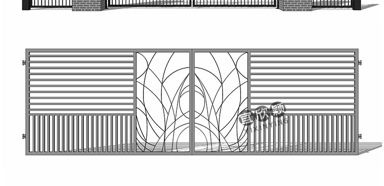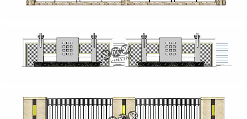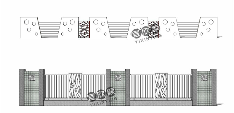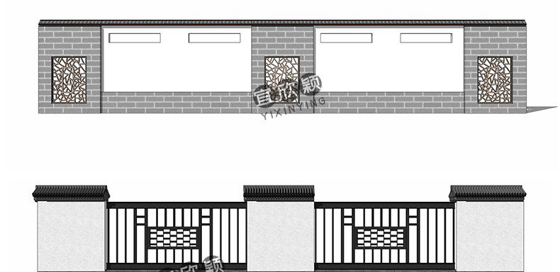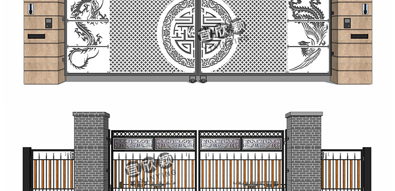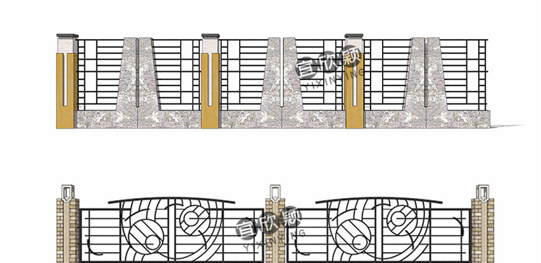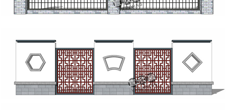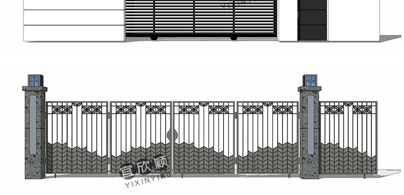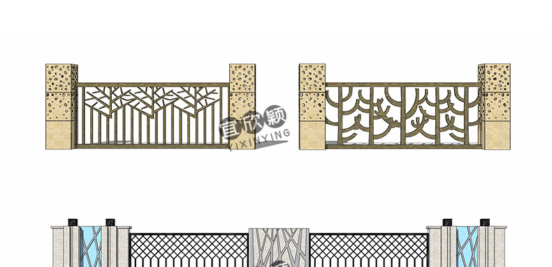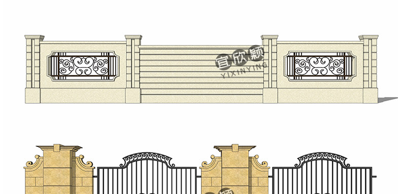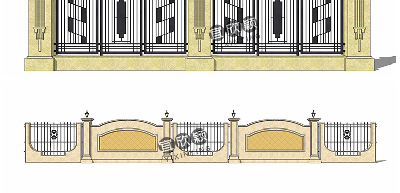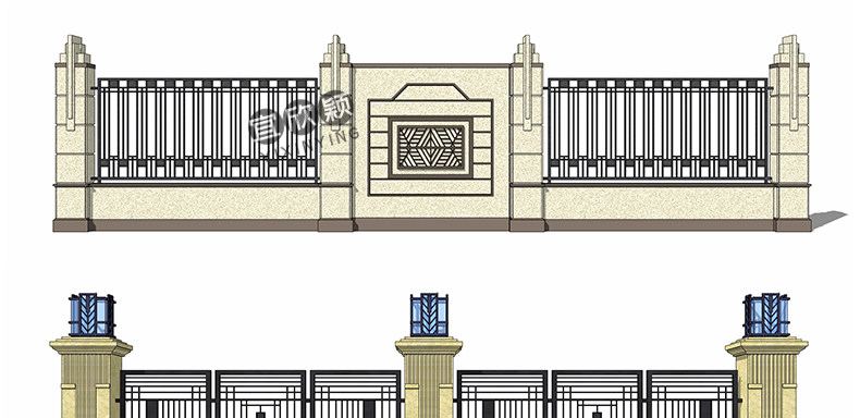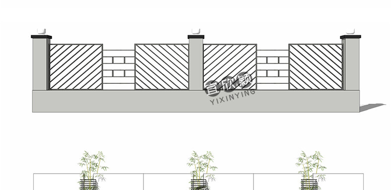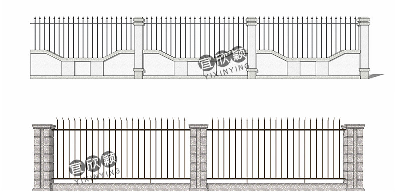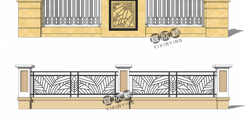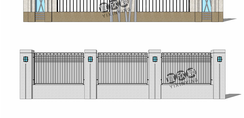 現(xiàn)代歐式法式住宅小區(qū)居住區(qū)中式柵欄圍墻鐵藝欄桿SU模型sketchup