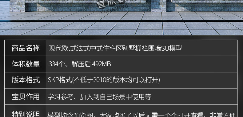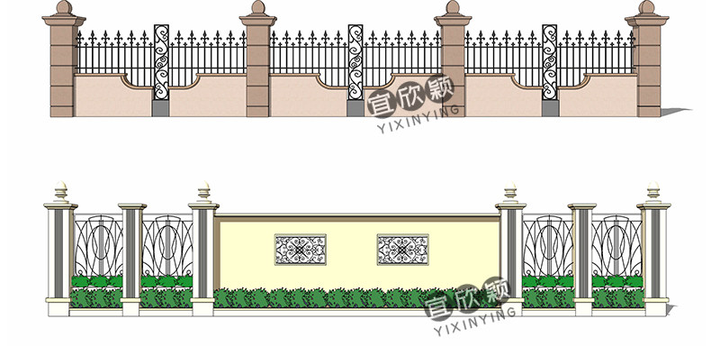 現(xiàn)代歐式法式住宅小區(qū)居住區(qū)中式柵欄圍墻鐵藝欄桿SU模型sketchup推廣熱賣行情