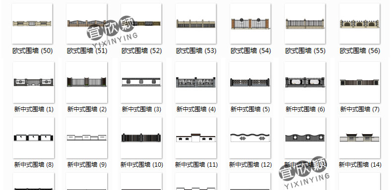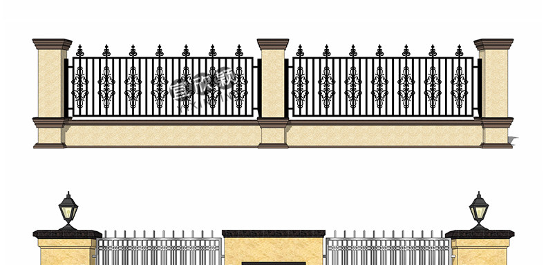 現(xiàn)代歐式法式住宅小區(qū)居住區(qū)中式柵欄圍墻鐵藝欄桿SU模型sketchup價格行情