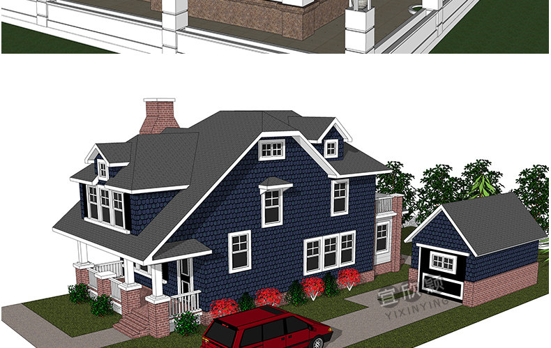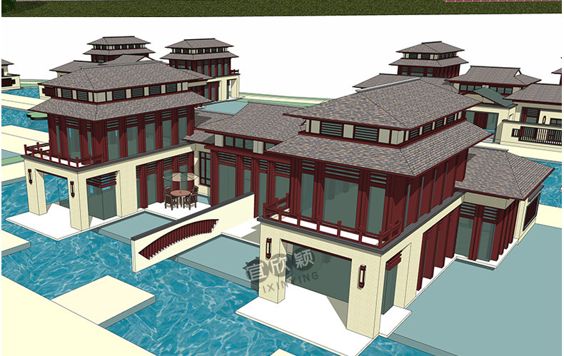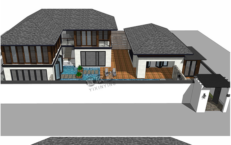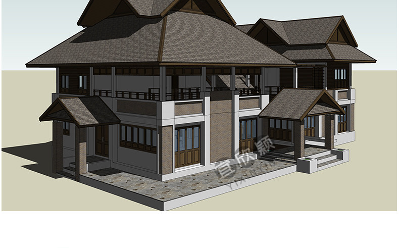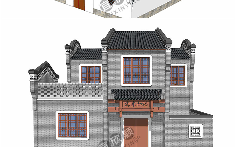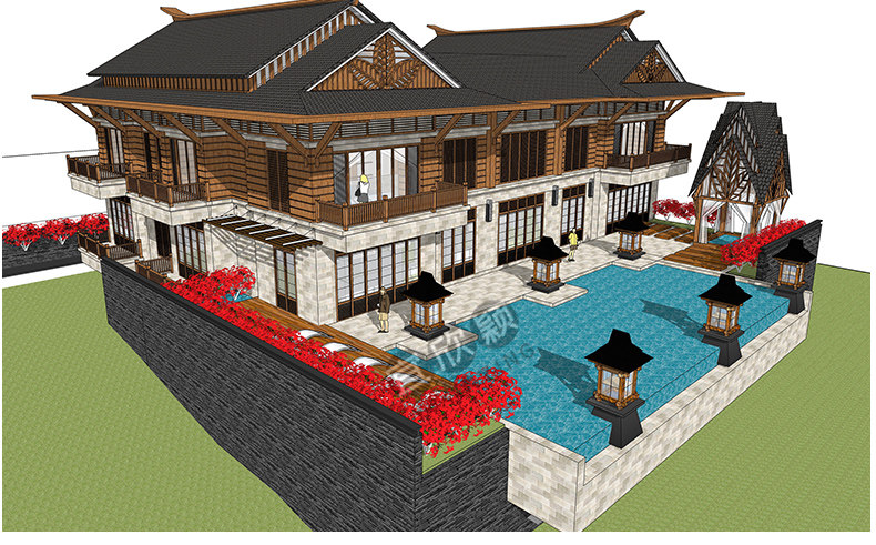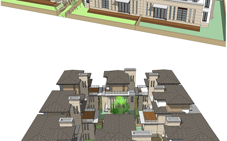 老房民居改造新中式民宿茶室度假村美麗鄉(xiāng)村建筑SU模型CAD施工圖推廣熱賣行情