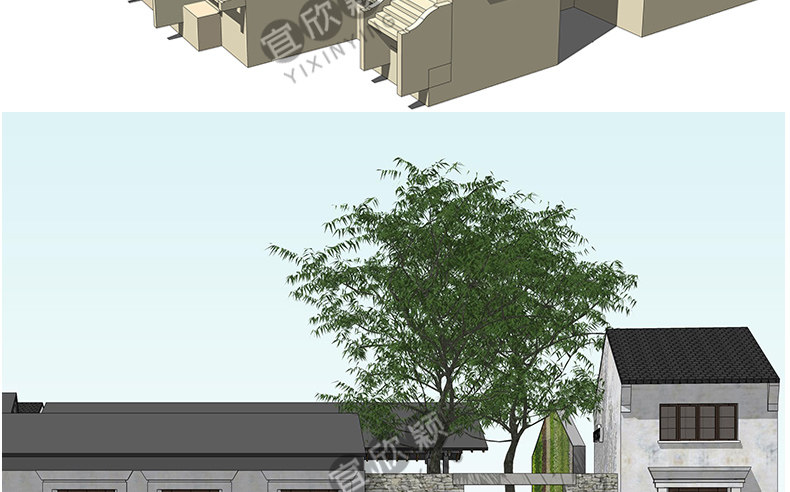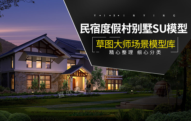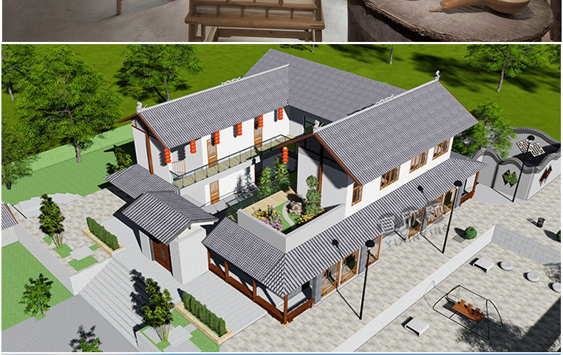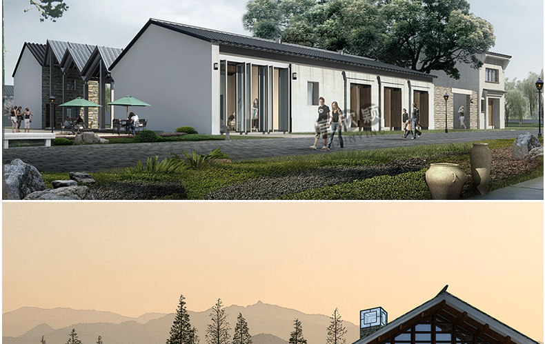 老房民居改造新中式民宿茶室度假村美麗鄉(xiāng)村建筑SU模型CAD施工圖價(jià)格行情