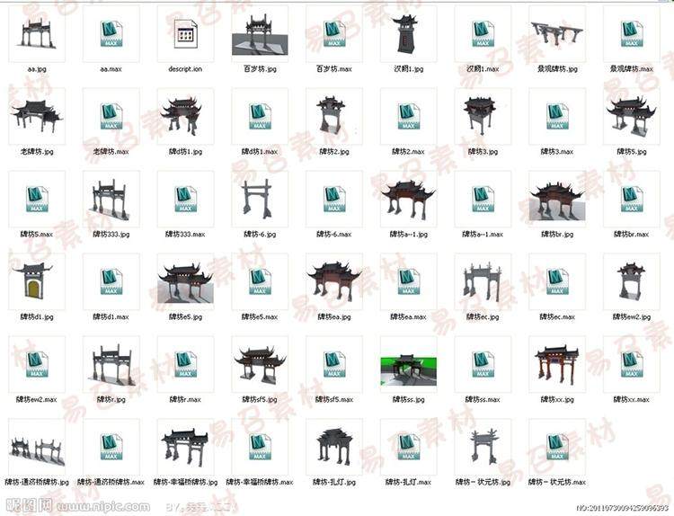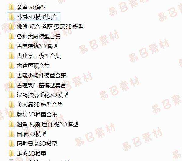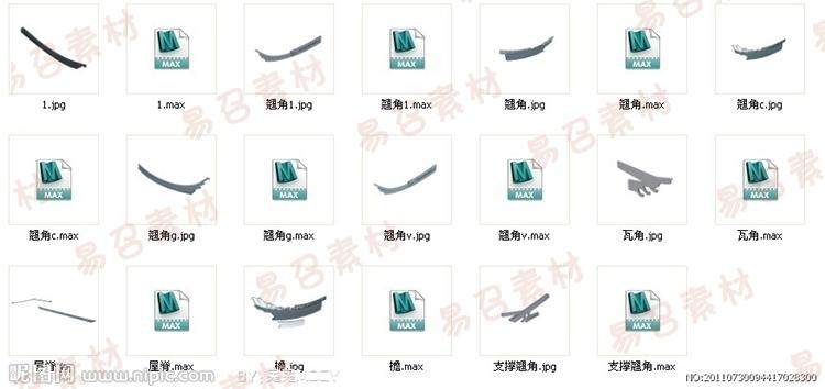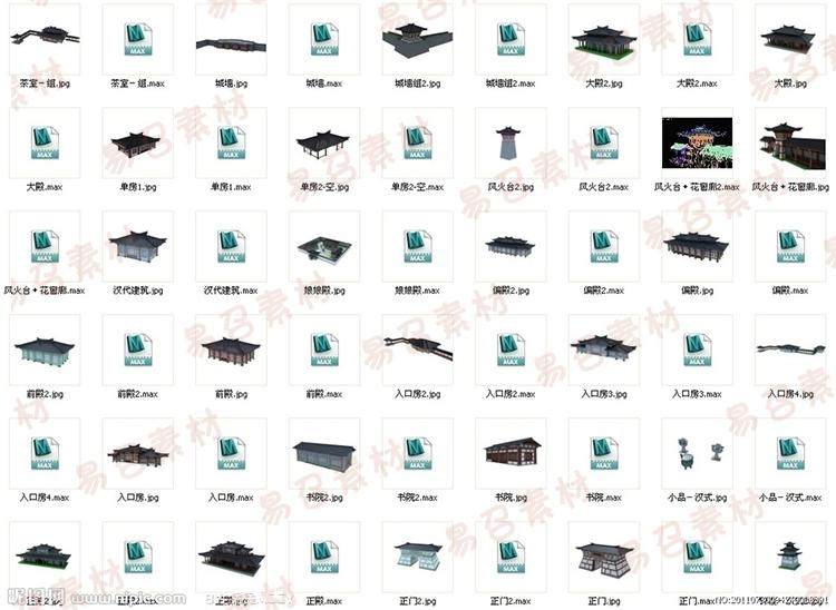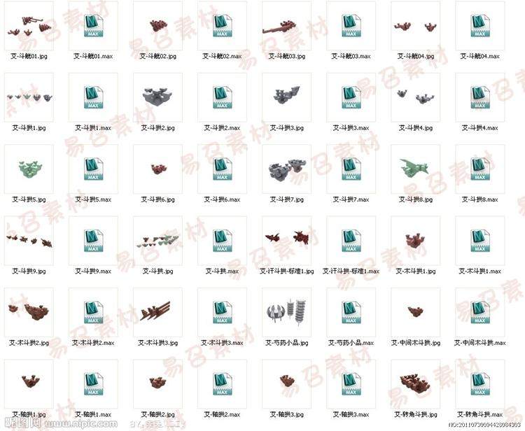 寶貝描述:3D模型古建構(gòu)件,中高模無貼圖,古代建筑屋頂/亭子/圍墻/走廊/斗拱/門窗/翹腳/檐...具體看下面截圖~~