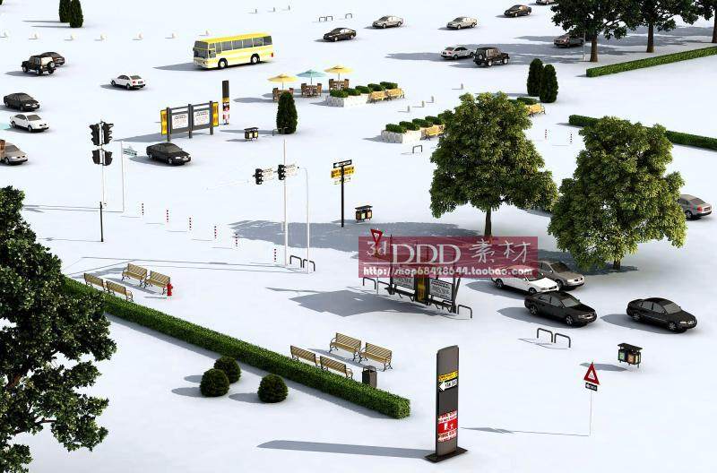 城市道路交通街道景觀3dmax模型設(shè)計素材 人行道街景鳥瞰透視3D推廣熱賣行情