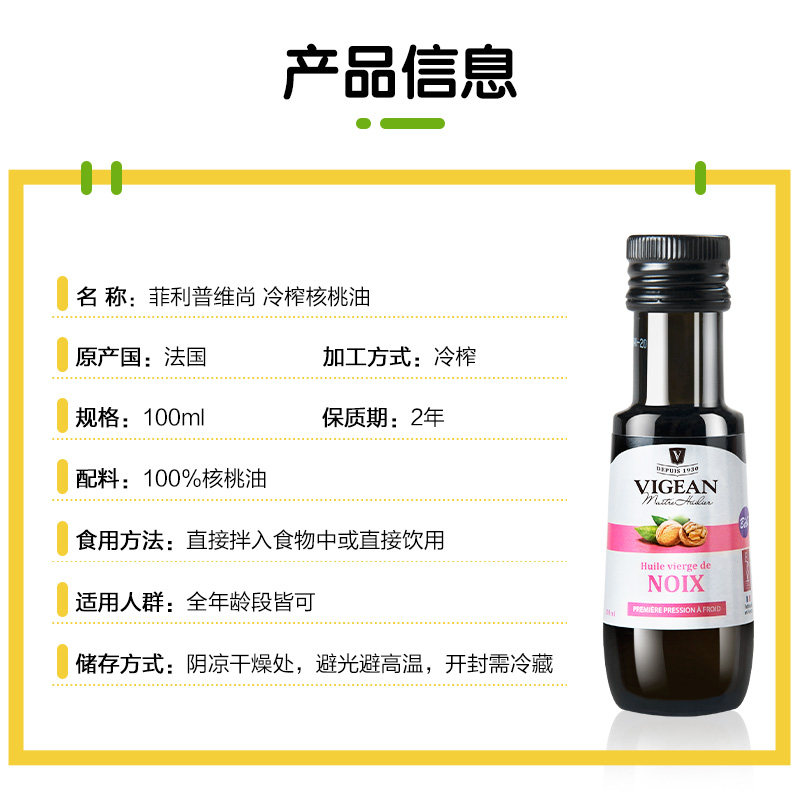 菲利普維尚核桃油食用油進(jìn)口小瓶裝兒童適合寶寶油 輔食6個(gè)月冷榨推廣熱賣行情