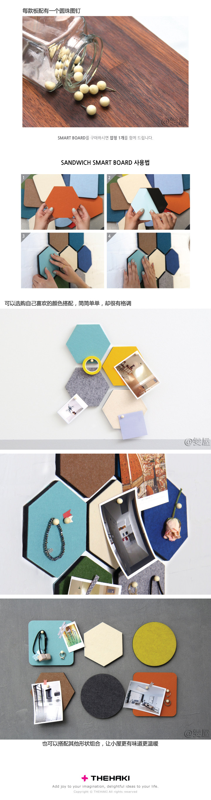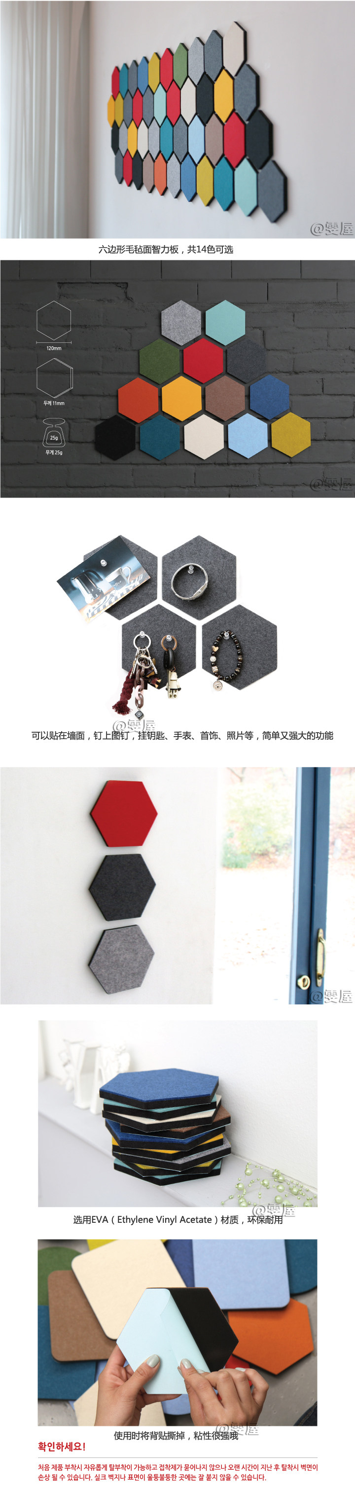 Thehaki 韓國(guó)創(chuàng)意毛氈六角形智力板多功能彩色置物墻貼裝飾板壁飾推廣熱賣(mài)行情