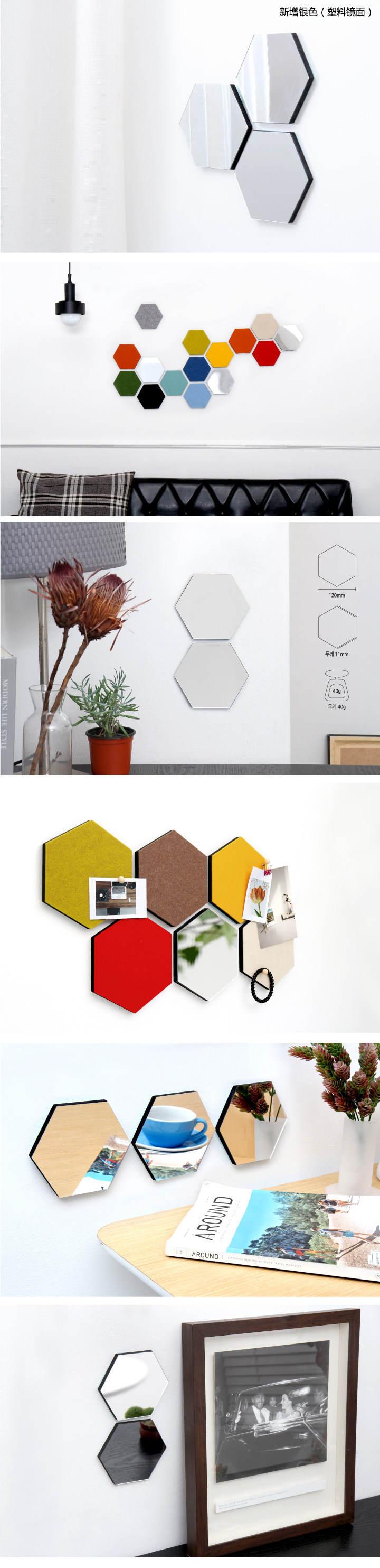 Thehaki 韓國(guó)創(chuàng)意毛氈六角形智力板多功能彩色置物墻貼裝飾板壁飾價(jià)格行情