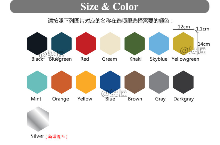 - 顏色分類(lèi):Black黑色Bluegreen藍(lán)綠色Red紅色Cream奶黃色Khaki軍綠色Skyblue天藍(lán)色Yellowgreen黃綠色Mint薄荷色Orange橘色Yellow黃色Blue藍(lán)色Brown棕色Gray淺灰Darkgray深灰Silver銀色