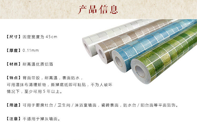 馬賽克廚房防油貼紙 鍍鋁貼衛(wèi)生間瓷磚防水貼墻貼紙 1米價價格行情