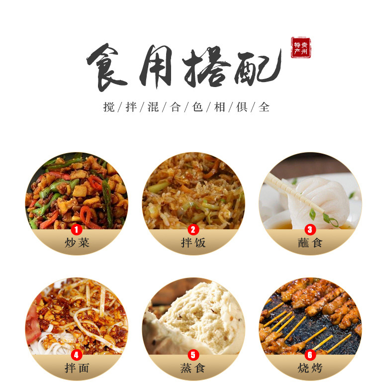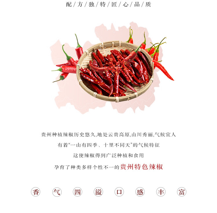 • 配料表:辣椒、菜籽油、食盐、味精、茴香、花椒、芝麻