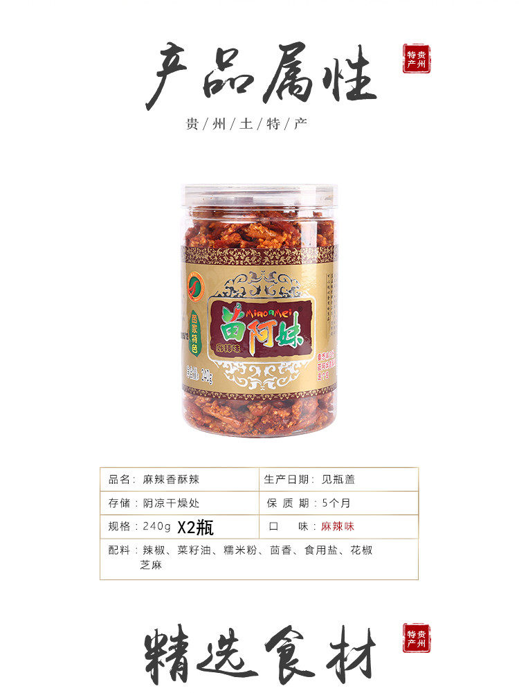 贵州特产苗阿妹香酥辣240g*2瓶香辣酥香脆椒炸芝麻辣椒干零食推广热卖行情