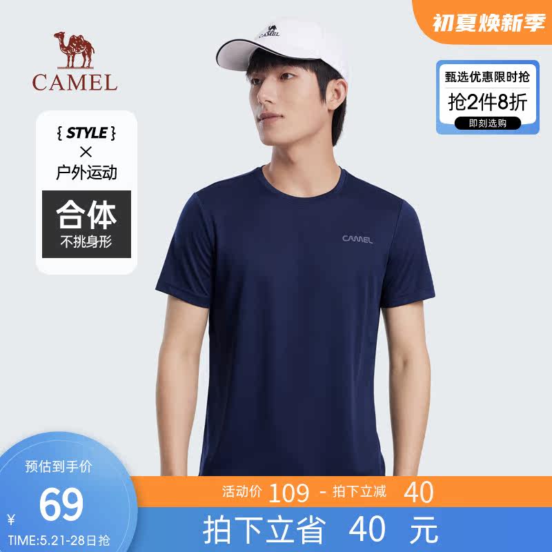 骆驼男装短袖t恤男女夏季新款速干透气情侣圆领纯色半袖打底衫价格行情