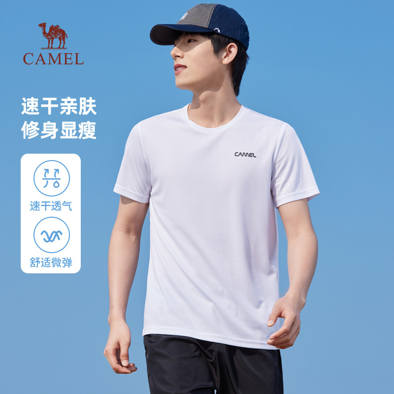 骆驼男装短袖t恤男女夏季新款速干透气情侣圆领纯色半袖打底衫推广热卖行情