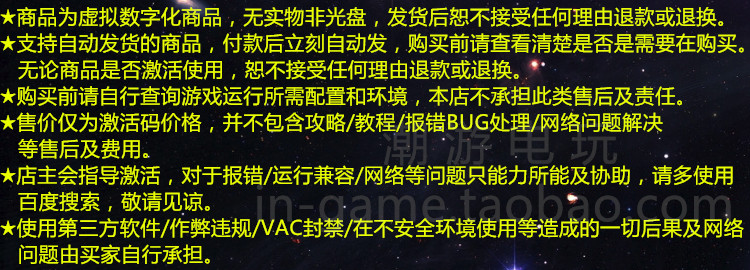 | 發(fā)貨方屎 | steam禮物(GIFT)鏈接,發(fā)送到買家留言處的郵箱內(nèi)。 |