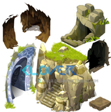 游戲美術(shù)資源 場(chǎng)景拼圖素材 2D地圖原畫設(shè)定 山地元件500多張PNG