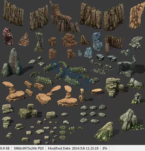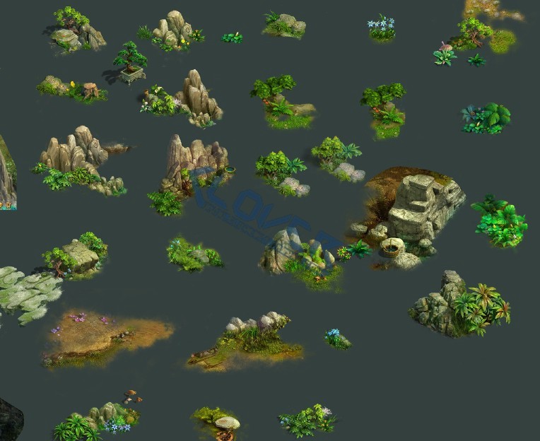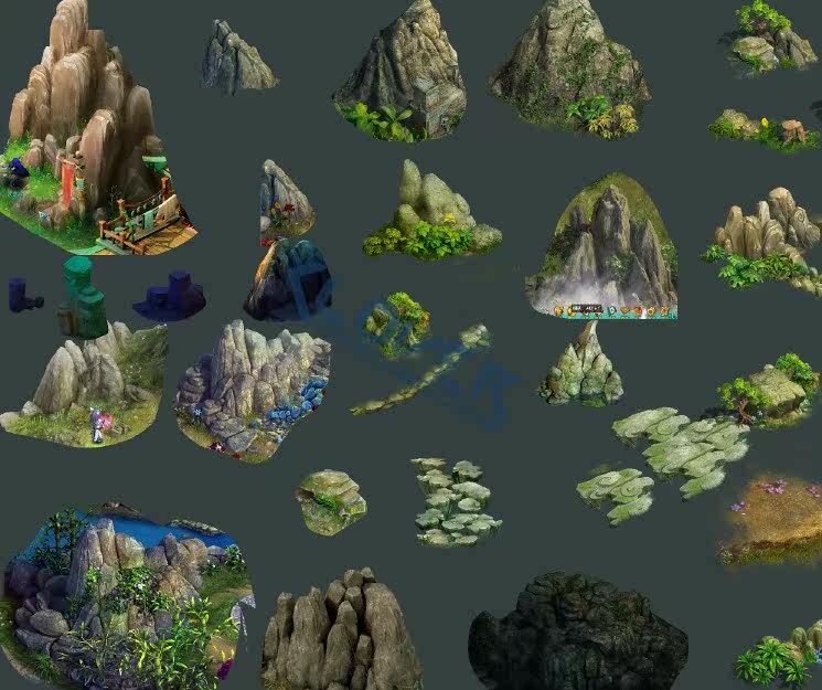游戲美術(shù)資源/2D場(chǎng)景配件原件素材 地表 超多各種石頭組合合集