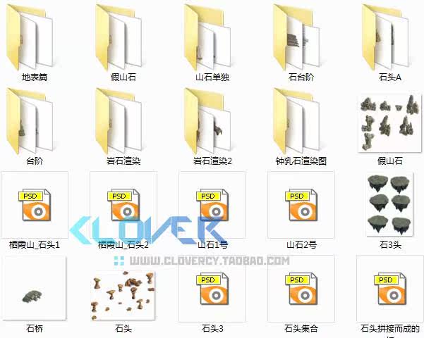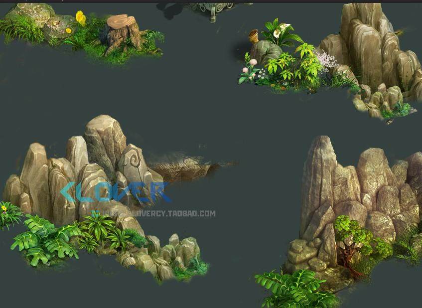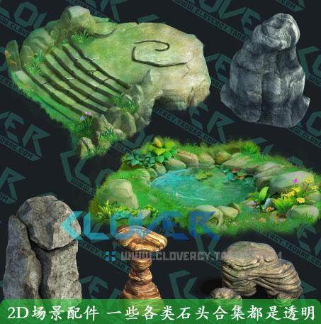 游戲美術(shù)資源/2D場(chǎng)景配件原件素材 地表 超多各種石頭組合合集價(jià)格行情