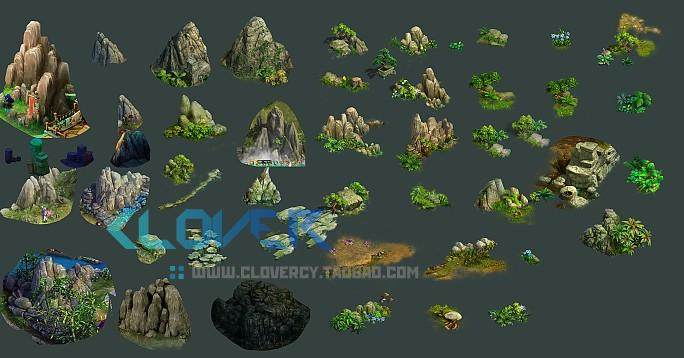 游戲美術(shù)資源/2D場(chǎng)景配件原件素材 地表 超多各種石頭組合合集推廣熱賣(mài)行情