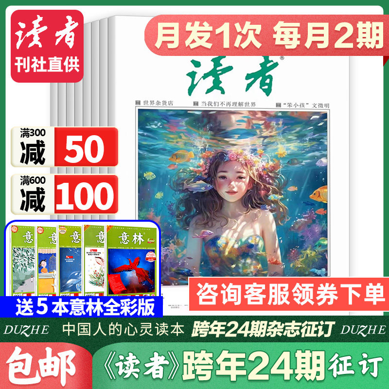 讀者雜志【全年訂閱共24期】2023年1-5-6月起訂【送意林雜志全彩5本】包郵小學(xué)初高中學(xué)生閱讀理解作文素材青年文學(xué)文摘合訂本期刊