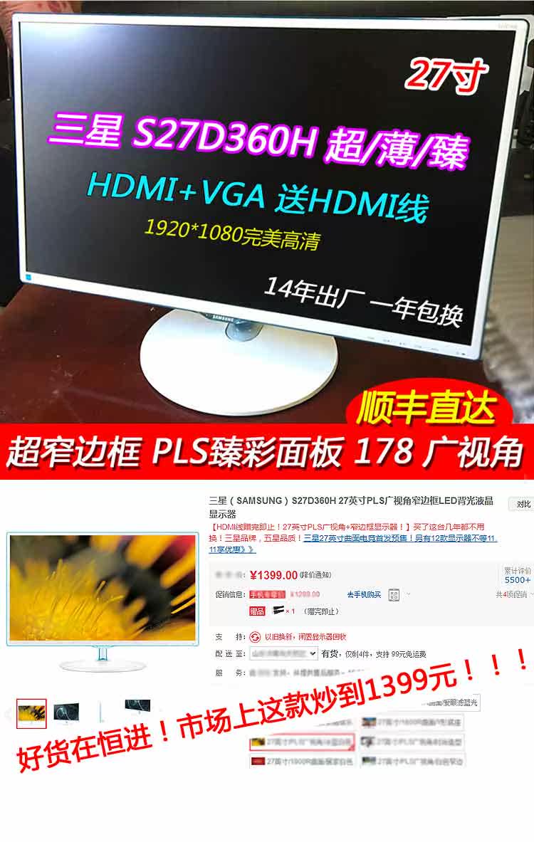 二手顯示器AOC 三星17 23 24 27寸 IPS非常好寬屏 LED 電腦液晶包郵價格行情