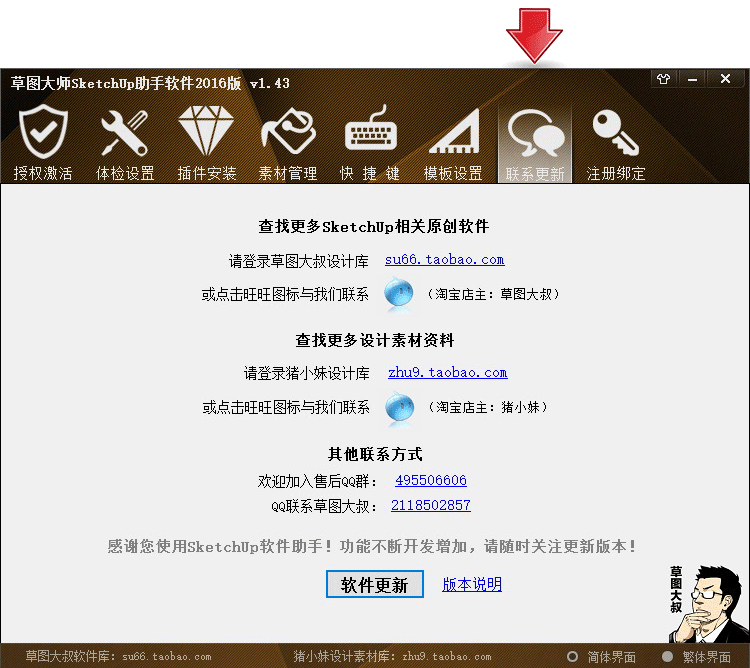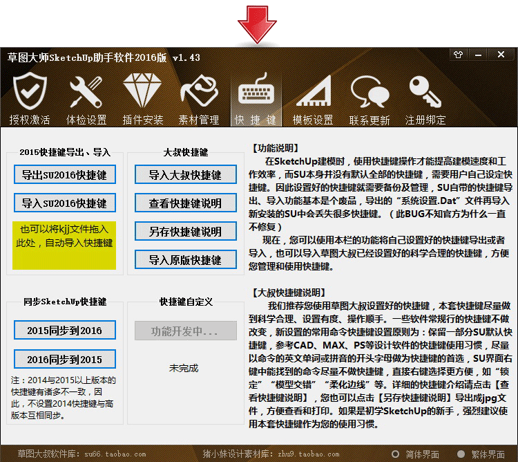 SketchUp2016官方網(wǎng)站發(fā)布后,草圖大叔日夜不停,加班加點很不錯時間為大家推出非常新版的SketchUp助手軟件,自助手軟件上架以來,深受行內(nèi)設計師的支持和認可,我們不斷開發(fā)和升級助手軟件的功能,新版的助手軟件已增加的大量的功能,為設計師使用SketchUp提供了很多便捷功能和服務,強大的功能不拿文字描述了,請看下面我們的助手軟件界面了解詳情。