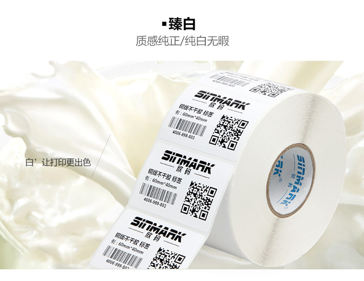 欣碼銅版紙條碼不干膠標(biāo)簽打印紙80~102mm寬30 40 50 70 100 150