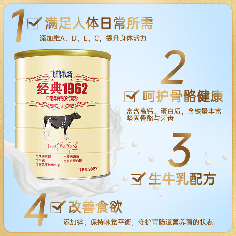 飛鶴經(jīng)典1962奶粉中老年高鈣奶粉成人老人無蔗糖正品官方旗艦店