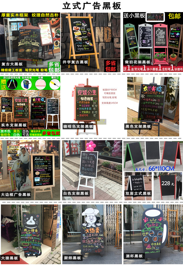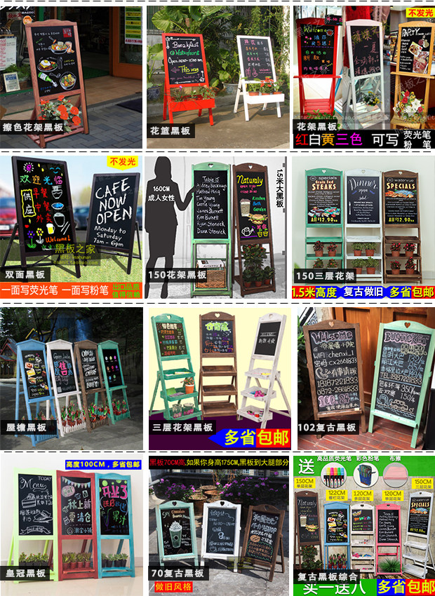 復(fù)古做舊立式裝飾廣告小黑板 網(wǎng)咖啡館會所餐廳菜單支架式宣傳板價格行情