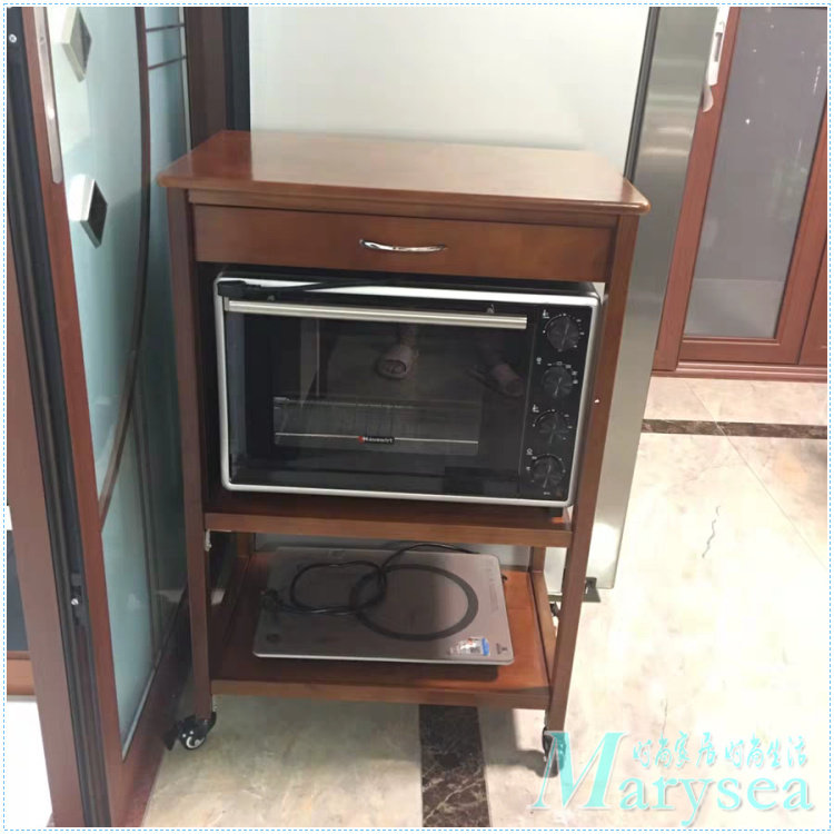實(shí)木廚房置物架角架落地式多層收納架子烤箱架可移動美式微波爐架推廣熱賣行情