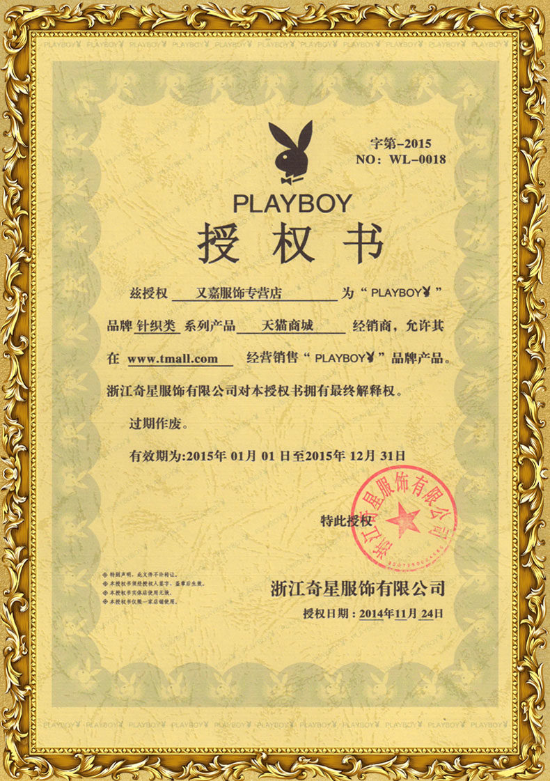 - 品牌:PLAYBOY/花花公子