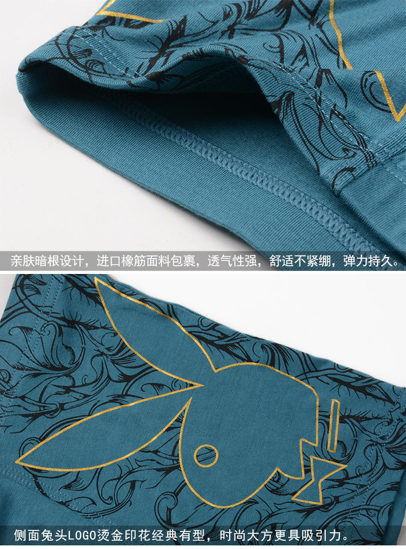 禮盒裝 花花公子男士內(nèi)褲 平角褲 莫代爾印花中腰青年四角大碼.