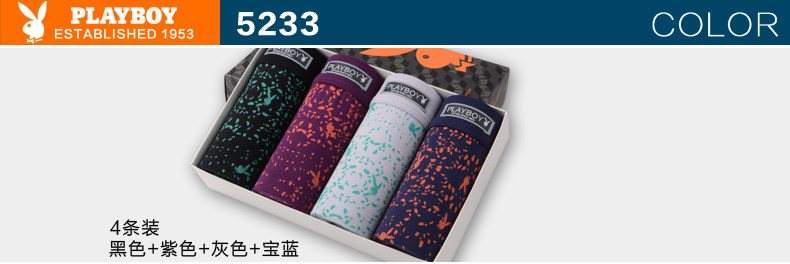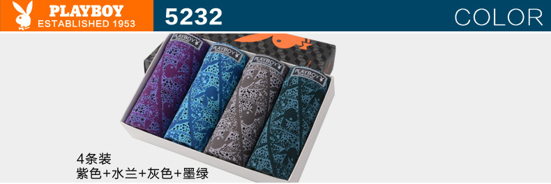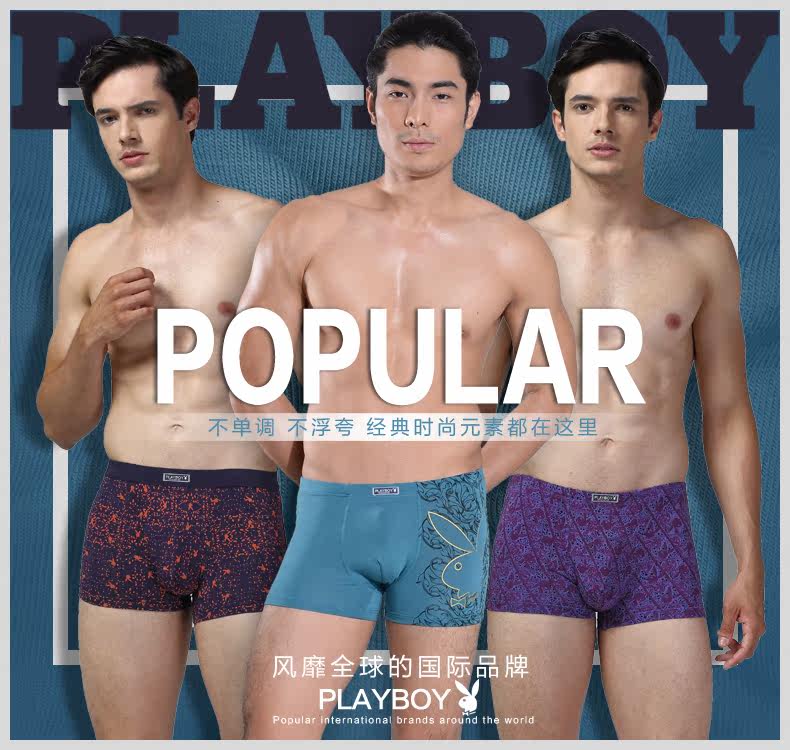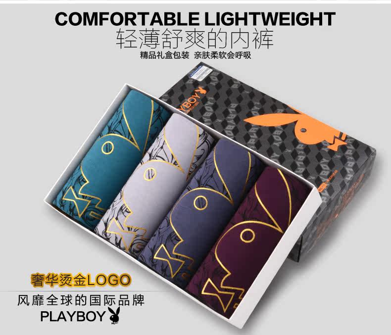 禮盒裝 花花公子男士內(nèi)褲 平角褲 莫代爾印花中腰青年四角大碼.推廣熱賣行情