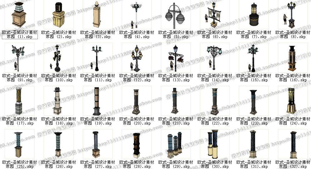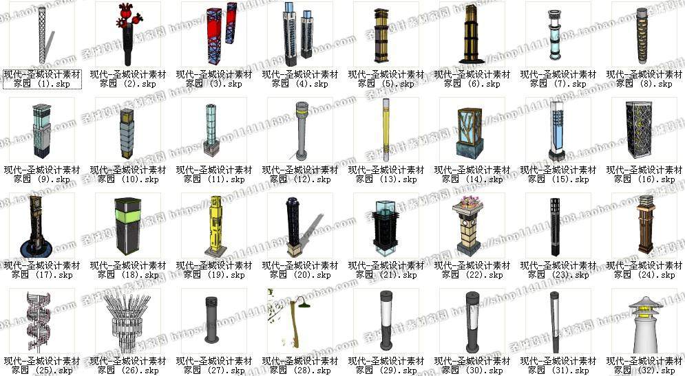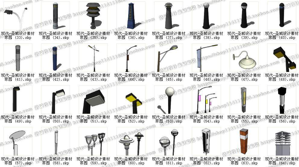 SU素材 草圖大師 景觀燈具 歐式現(xiàn)代東南亞 中式 燈柱草地?zé)?石燈價格行情
